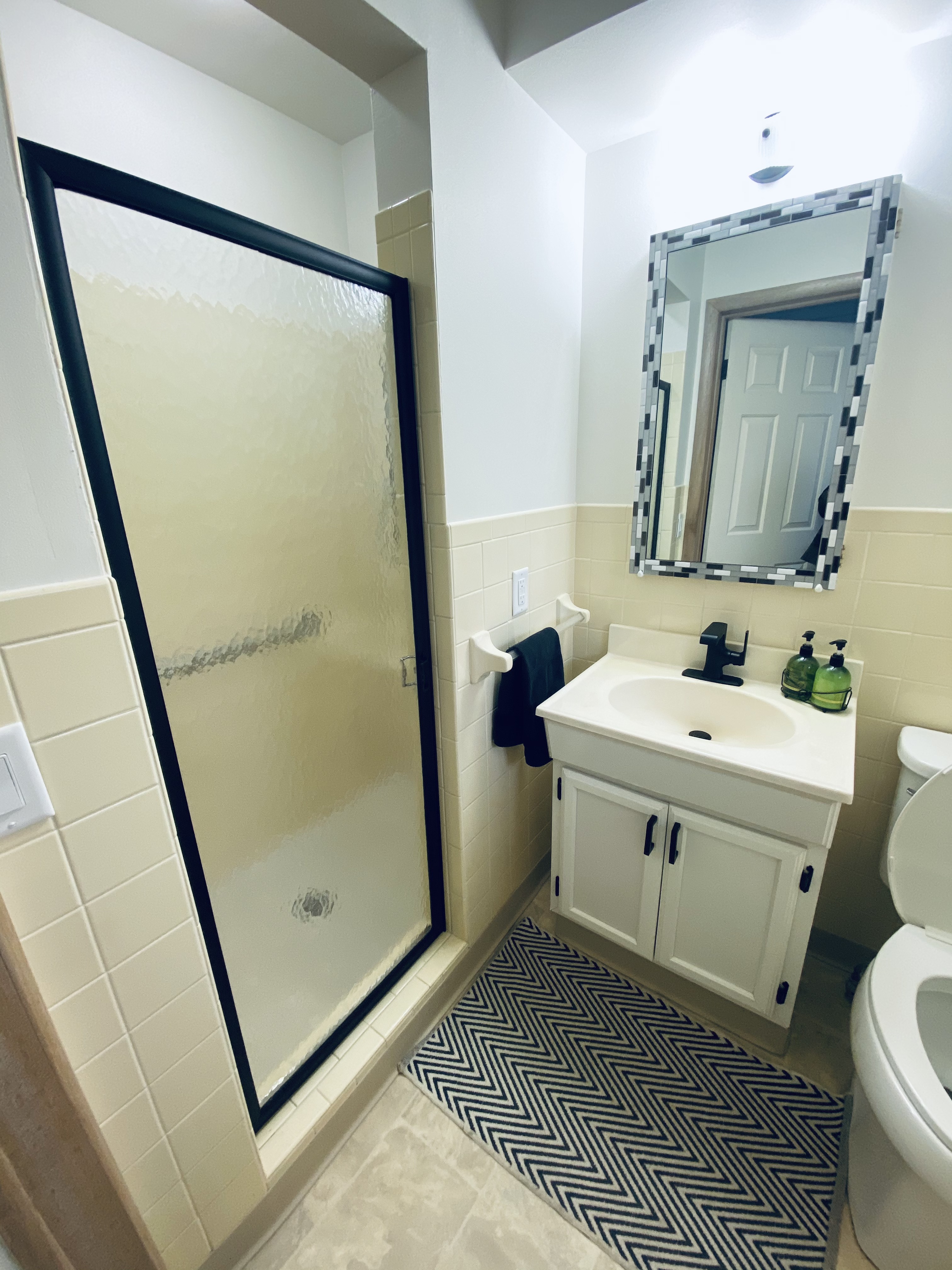 I can’t remember if I shared this project with you or not…our latest project, which happened a few months ago, was our laundry room bathroom. This is the before picture from when our house was listed for sale. I can’t find the before pictures that I took, but this one works. There wasn’t too much…